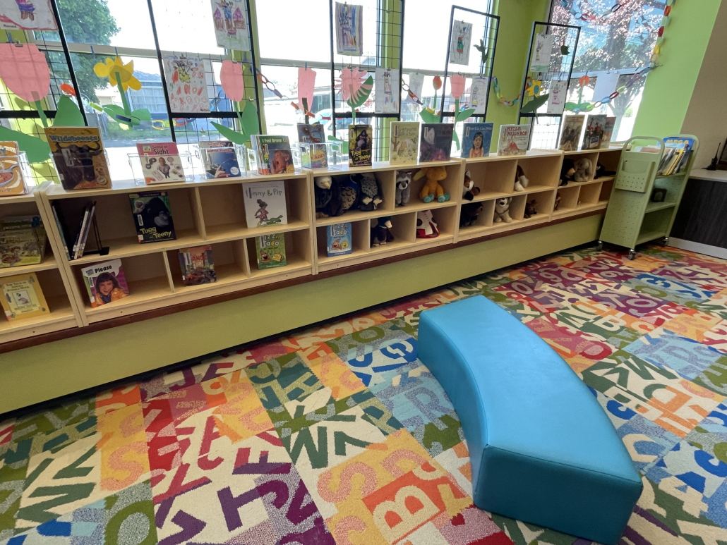 Kindergartners at the Pendleton Early Learning Center (PELC) have an upgraded school library with new shelving to display hundreds of new books, thanks to the Wildhorse Foundation and other donors.